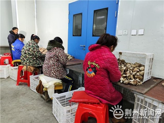 一旁的车间内,工人们正忙着把刚摘下来的鲜菇分拣。分拣员熊明华告诉记者,她是周边村民,农闲时节来企业干活,活计不累,做起来轻松。