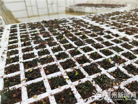 大棚里,几盘试验用的育苗盘已经被放在了注入营养液的育苗池里,小小的新芽探出了头,绿油油的叶片,焕发着生机。