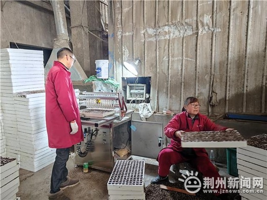 除了香菇,朝天椒种植也是一个收益不错的项目。在位于江陵县马家寨乡金桥村的旭晶家庭农场里,村民们正在进行基质土上盘、播种。