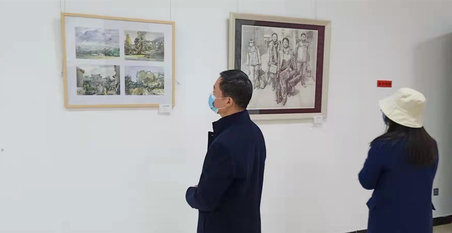 在市美术馆(梅苑古街),70余件特色鲜明、内容积极向上,艺术聚焦潜江人民不断奋斗追求幸福生活的美术图片作品悬挂在墙面上,吸引着不少市民前来欣赏,有的市民不禁拿出手机拍照留影。