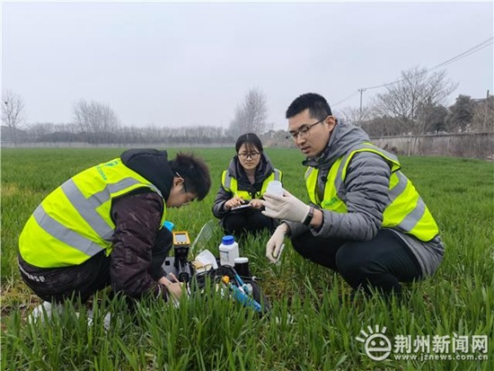 记者在荆州区一处农田见到薛肖斌时,他正在与爱人、同事一起进行地下水的采样与分析,通过采样检测来了解地下水及土壤的质量标准、成分含量等,识别超标因子,诊断潜在影响因素。