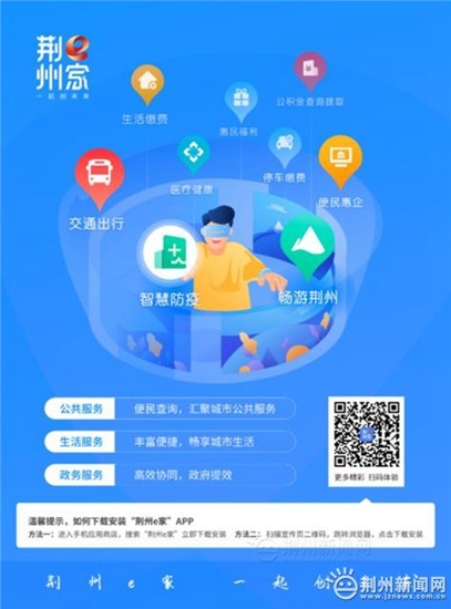 作为荆州市政务服务移动端平台和智慧城市综合服务总入口,荆州e家App汇聚整合了政务、公共和民生服务事项,数字化赋能多元城市生活场景,大家只需要拿起手机下载App ,就可以轻松实现大事小事“掌上办”“指尖办”!