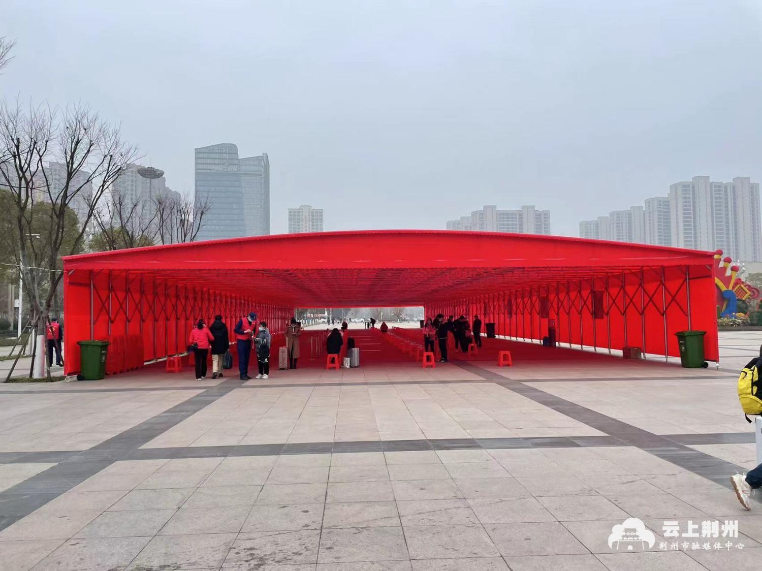 正月十五元宵节过后,不少外地务工人员以及学生也要启程返岗、返校。在荆州火车站站前广场记者看到,旅客临时待候区已经搭建完毕,棚内不仅配备了板凳、饮水机,还安排了志愿者以及环卫保洁人员,随时为旅客们服务。