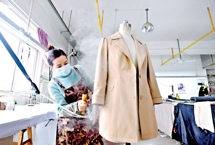 “一边加班生产,一边还有新的订单。”公司销售经理徐龙说,今年春节比往年提前了半个月,春季服装生产的时间也延长了半个月。公司为了完成去年年底的春装订单任务,生产车间正月初十就正式开工了,每天早上7时至晚8时,加班加点满负荷运行。