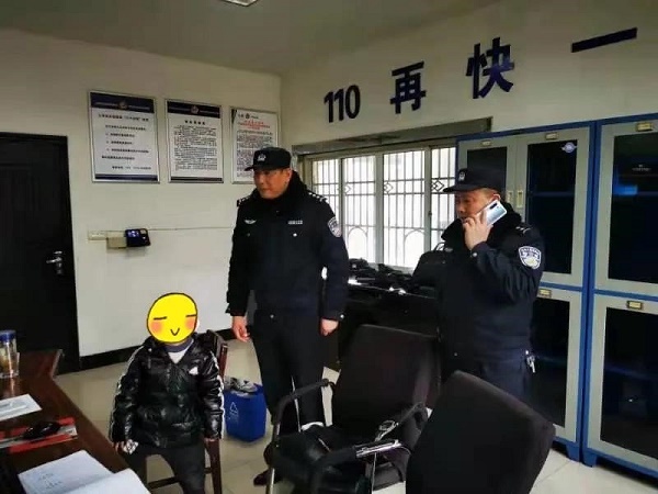 因天气寒冷,小男孩的脸已冻得通红。民警便先行将其带到派出所。小男孩哭声不停,民警见状,一边帮助小男孩取暖,一边尝试用零食吸引小男孩的注意。很快,男孩的情绪稳定下来。