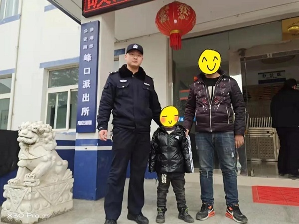 当日14时34分,峰口派出所接到110指令:峰口镇隆客多超市附近有一名疑似走失小孩。