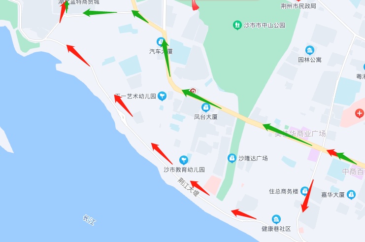 原行驶路线:太岳路—南湖路—沿江路—便河西路(—便河东路)—北京路—月堤路
