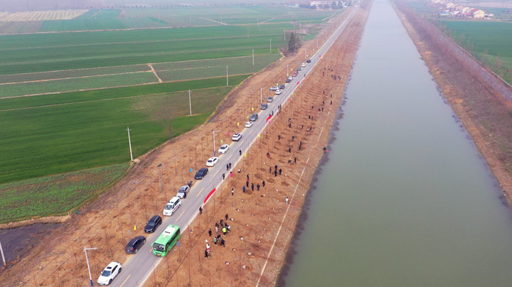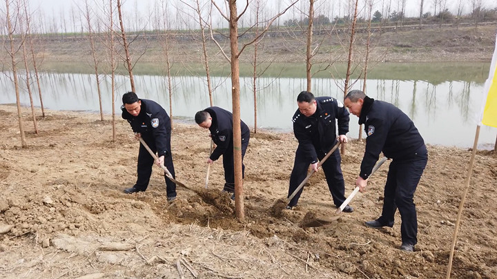 植树现场,大家分工合作、齐心协力,拿起铁锹,扶苗移正、铲土入坑、培实新土,认真细致地栽种每一棵树苗,一派热火朝天的劳动景象。在大家的辛勤劳动下,近300棵水杉树苗整齐排列在兴隆河边,迎风挺立。