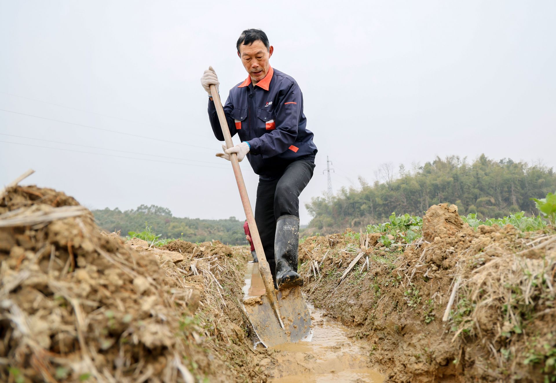 在广东畈村十二组的油菜地上,几名种植户正在清理沟渠、追撒尿素,农技人员在一旁答疑解惑,解决春耕中的“疑难杂症”:“冬水油菜的命,春水油菜的病,要注意油菜冻害。油菜早苔出现冻害,要组织有序摘除菜芯。每块土地的土质不同,耕作方法也要有所改变。”