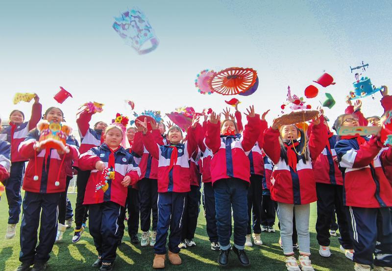2月23日,曾都区白云湖学校3000余名师生,带着自己亲手制作的写着自己梦想的帽子,举行“放飞梦想”户外活动。 (随州日报全媒记者李文军摄)