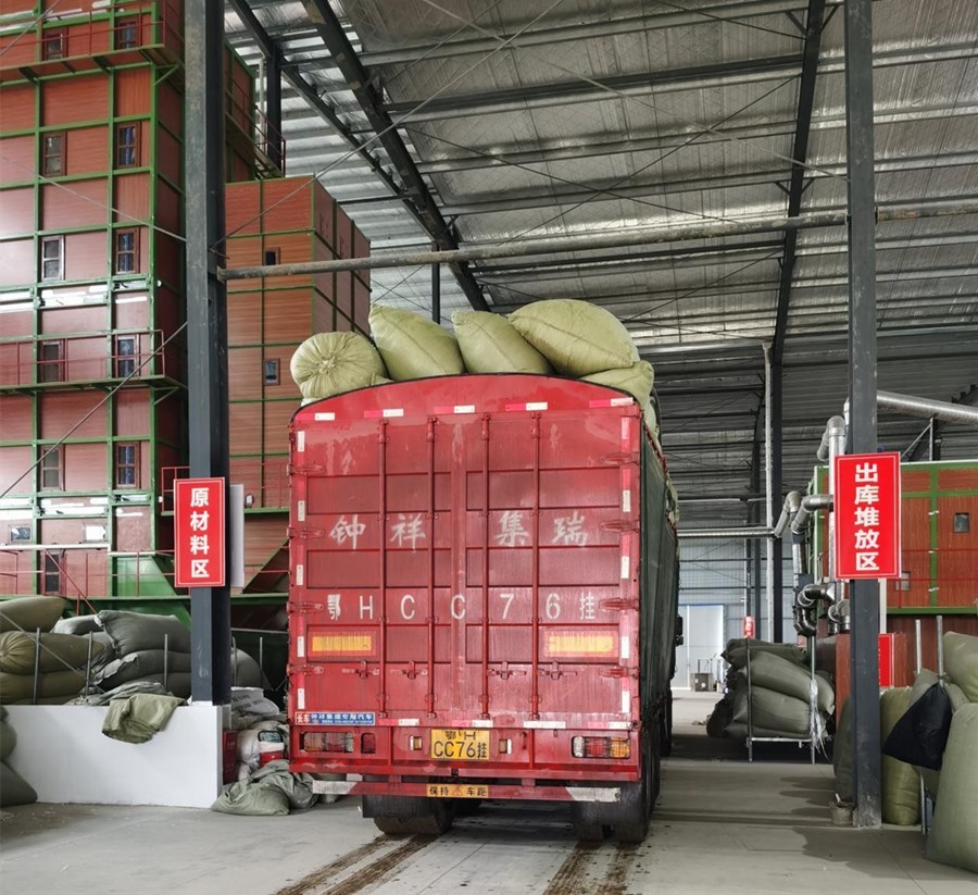 前不久,首车满载鹅绒的货车从这里出发,运往龙湾镇服装企业交付订单,实现该公司虎年复工复产后首次“开门红”。