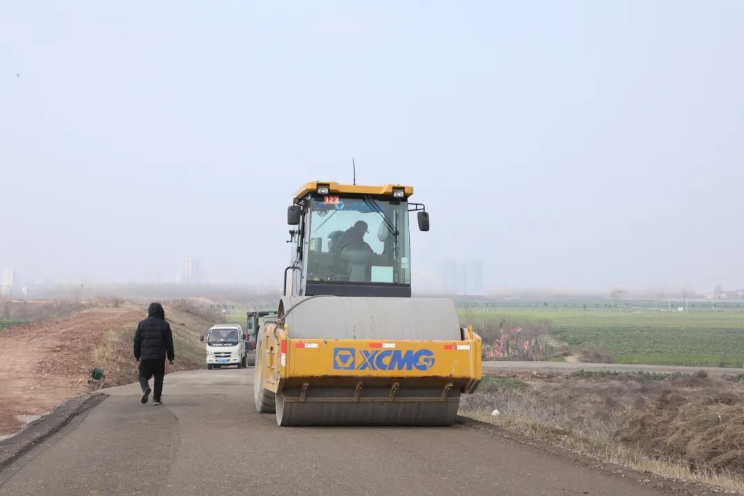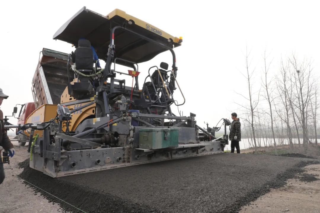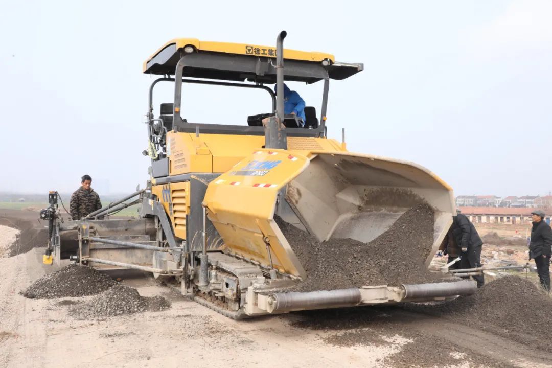 在长江村耀新民堤彩虹公路修建项目施工现场,工人们开着挖机、压路机,正在进行路面压实、摊铺等工作,施工现场一派忙碌景象。据项目负责人覃金能介绍,目前已完成工程量的55%。