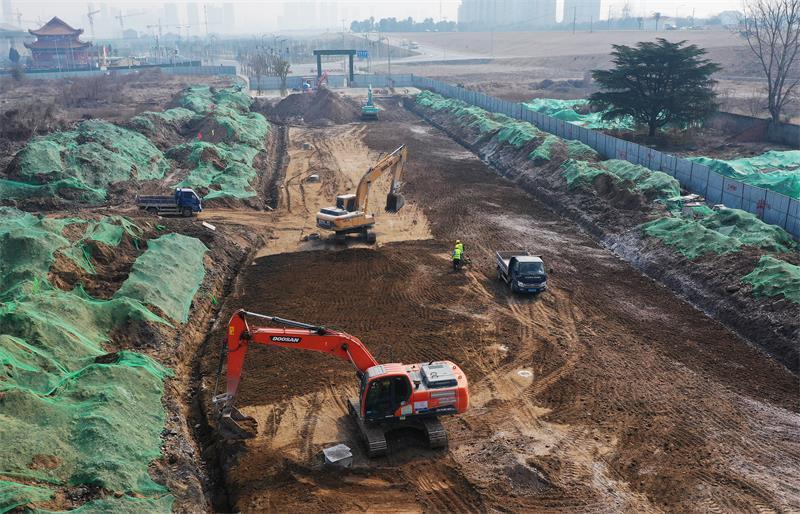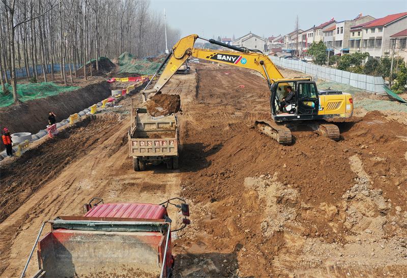 2月27日,荆江大道西环路至御河路施工正酣,十多台大型施工车辆在工人师傅的操作下,铆足干劲平整路基。