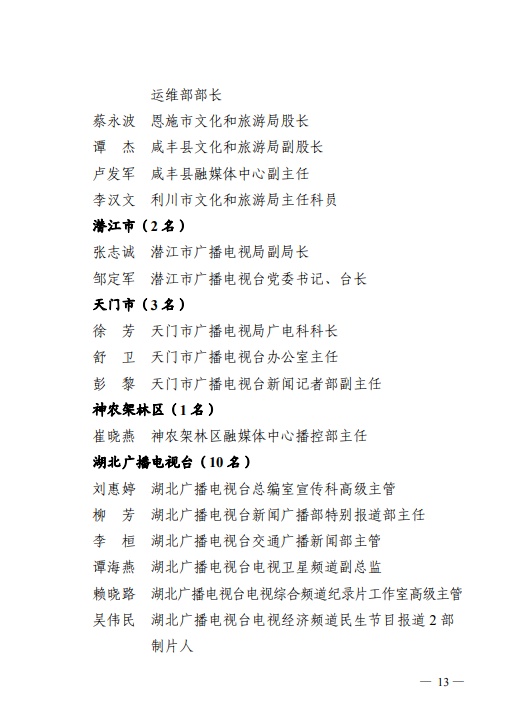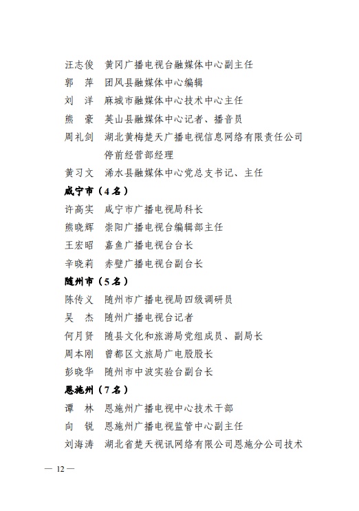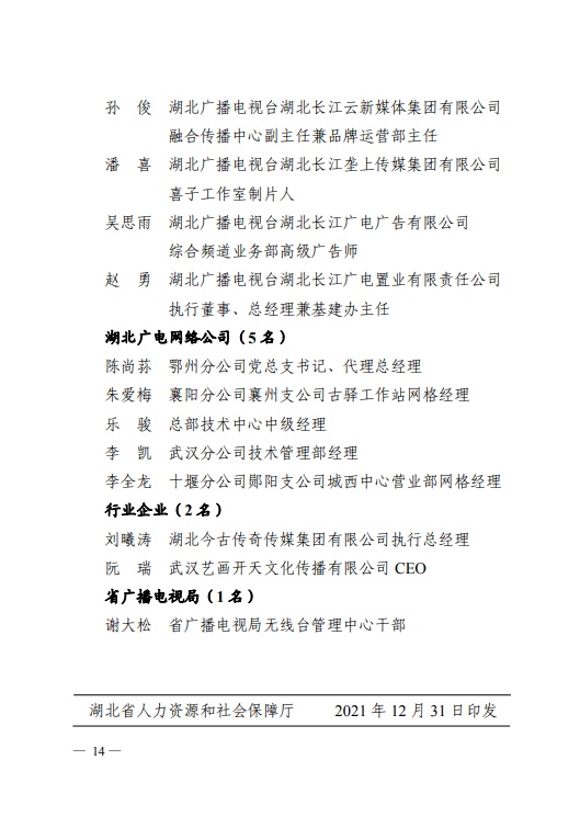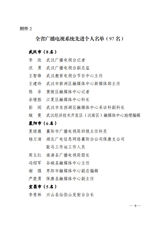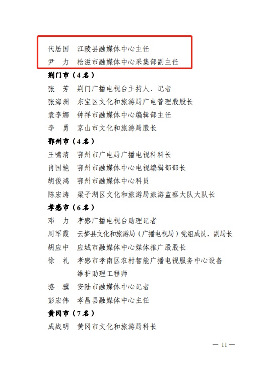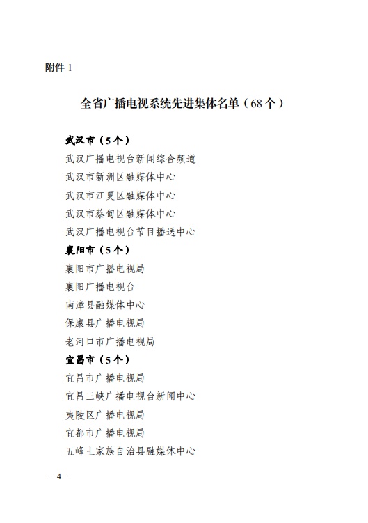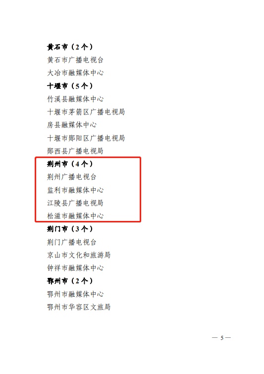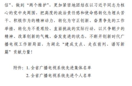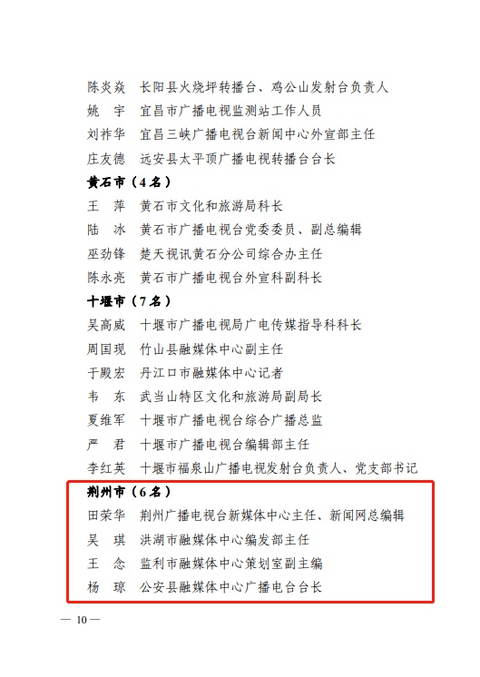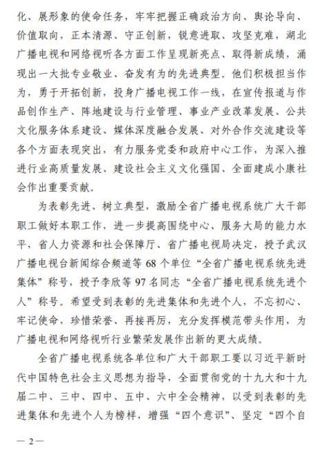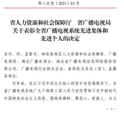 日前,省人力资源和社会保障厅、省广播电视局发布《关于表彰全省广播电视系统先进集体和先进个人的决定》,其中,荆州6人4单位获表彰。