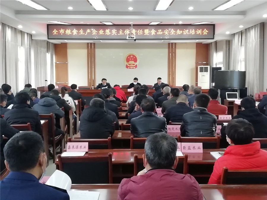 潜江新闻网讯(记者 王宇杰)为进一步提升食品生产企业食品安全管理水平,推动食品生产企业提高法律法规和食品安全标准规范意识,落实企业主体责任,3月1日,市市场监督管理局组织在浩口镇举行全市粮食生产企业落实食品安全主体责任暨食品安全知识培训会。全市55家粮食生产企业法定代表人或质量负责人,市市场监管局各基层所分管食品安全负责人、监管人员及相关科室负责人等100人参加本次培训会。