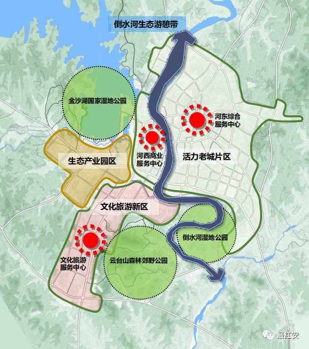 文化旅游新区:文化娱乐组团+山水宜居组团;
