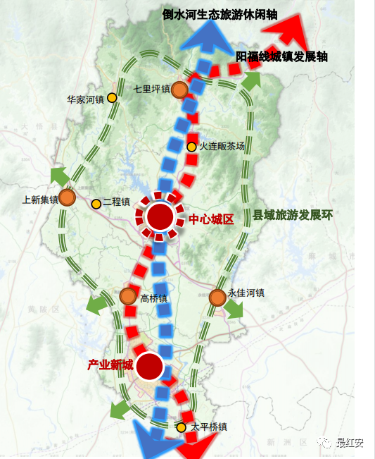 •两轴:沿阳福线城镇发展轴、沿倒水河生态旅游休闲轴;