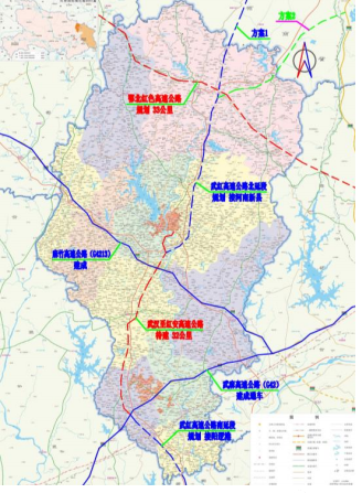 县域骨架生态路网格局:“两横一纵、一环六射”。