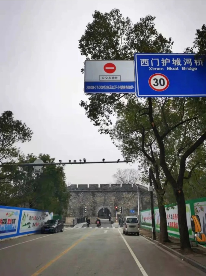 通过这两块指示牌的树立,我们不难发现,西门的通行规则由原来的只能出不能进,改为出城规则不变的同时打开了晚上20:00 — 早上7:00,允许七座及七座以下的小型客车进城的通行时间。