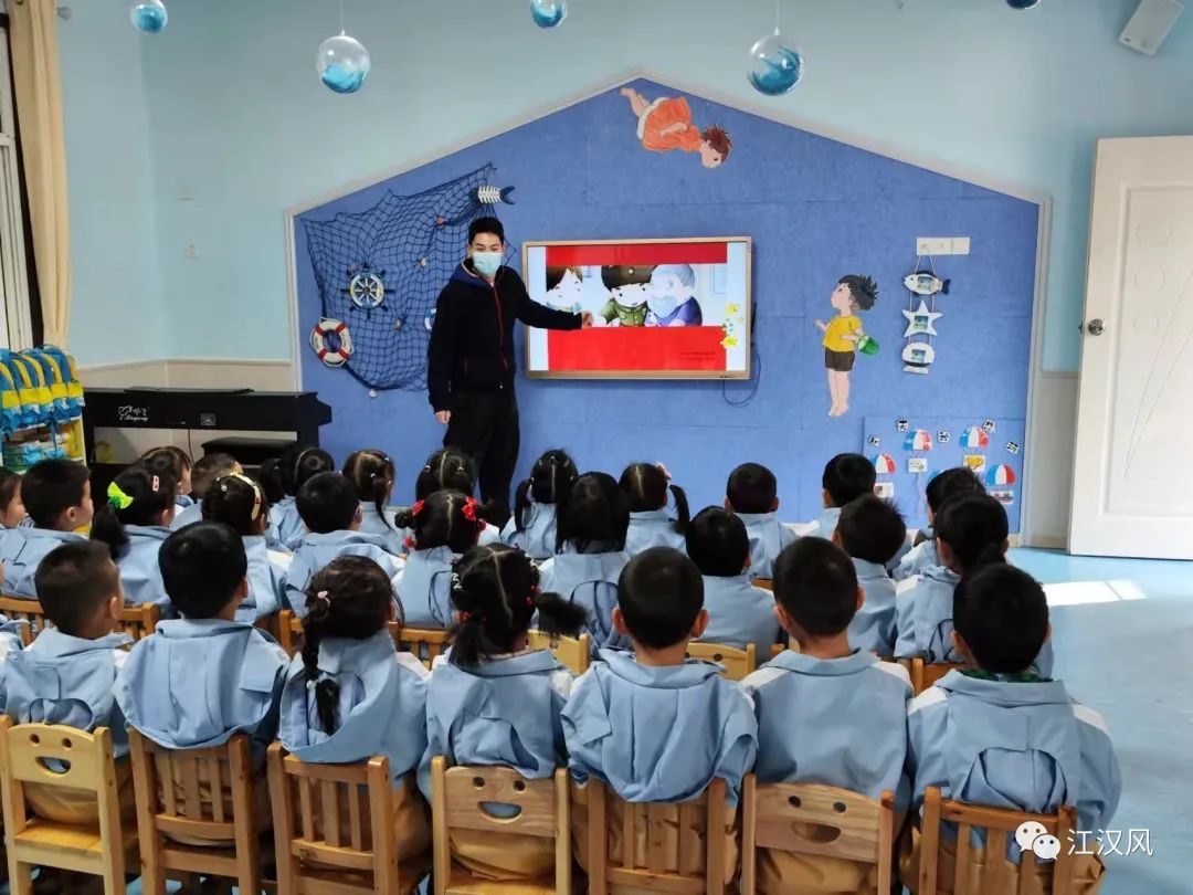 荆州广播电视台主播邓成明也作为志愿者,来到文湖幼儿园的小朋友身边,给孩子们讲“雷锋的故事”。