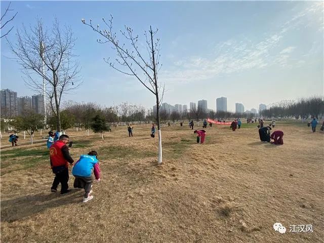 在《学习雷锋好榜样》歌声中,荆州市致敬行善者志愿服务团队的40多名志愿者,在临江仙公园开展清洁家园活动。