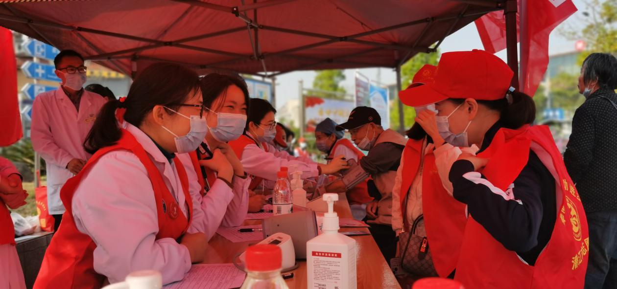 在市中心医院志愿服务义诊区,医护人员免费为群众提供健康教育、康复用药、慢病管理等方面的建议和意见,以及监测血糖、检测血压。