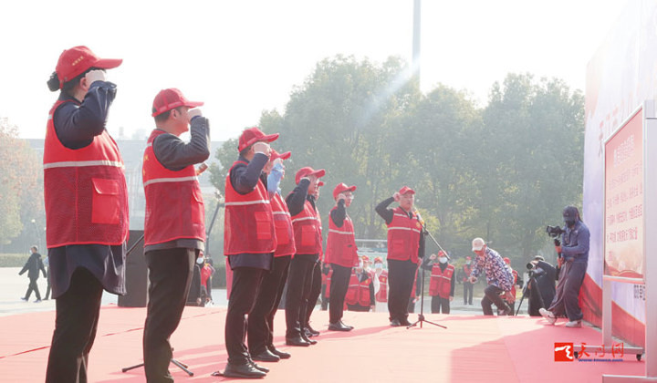 志愿者代表进行集体宣誓 天门网讯(全媒体记者王帅)3月4日,由市创文办主办,市新时代文明实践中心办公室、市志愿者协会承办,团市委、市妇联协办的全市2022年学雷锋志愿服务月活动启动仪式在陆羽广场举行。市委常委、宣传部部长、市创文指挥部副指挥长从进军,市人大常委会副主任、市创文指挥部副指挥长兼办公室主任陶家文出席启动仪式。