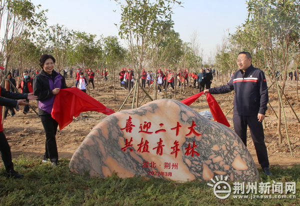 植树结束后,吴锦、周志红还为我市“喜迎二十大·共植青年林”活动揭牌。