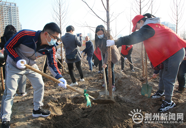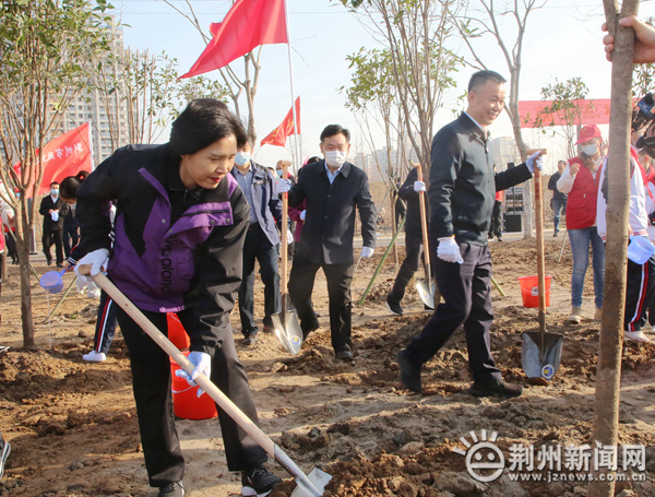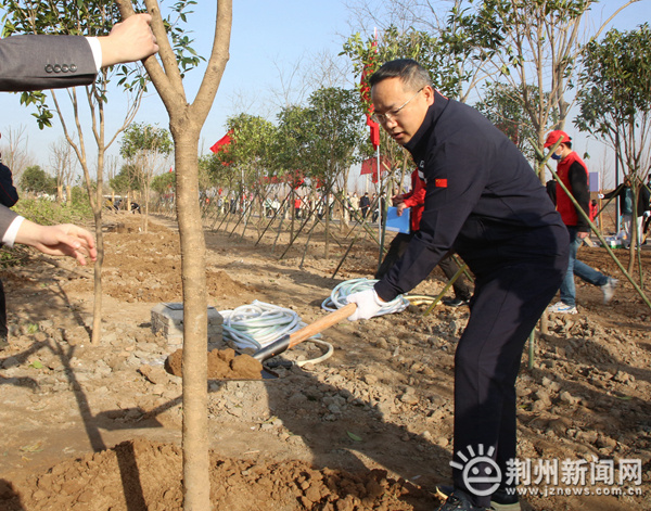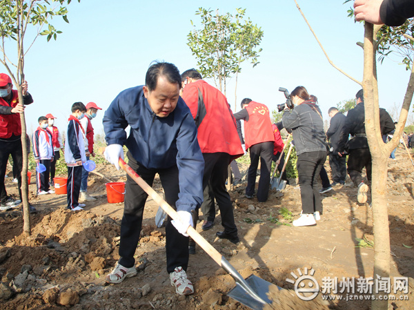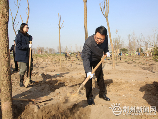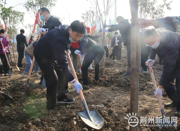 春风和畅,草木勃发。吴锦、周志红等领导同志扛起铁锹走向植树地点,同市直机关干部、青年志愿者、小学生一道挥锹铲土、围堰浇水合力栽下一株株树苗,为荆江两岸再添一片新绿。在和煦的阳光下,新种植的5300余株桂花、香樟、水杉、玉兰、银杏、重阳木,整齐排列,昂然挺立,为初春大地增添勃勃生机。