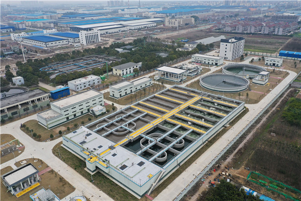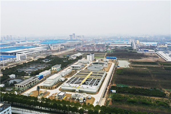3月8日,无人机从空中俯瞰刚投入运行不久的荆州市城南污水处理厂,原来的“臭水沟”如今变成了“景观池”呈现在镜头上的画面壮观优雅,既改善了周边市民的生活环境,又为助力乡村振兴奠定了坚实的基础。