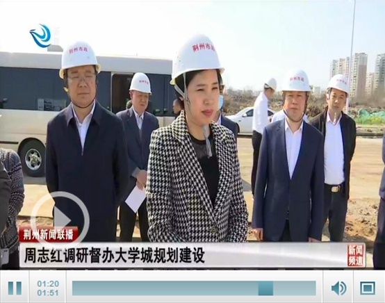 周志红一行查看了科创中心双子塔选址和中央公园、荆州科技学院建设现场,听取大学城相关项目规划建设情况汇报,并主持召开现场办公会。她指出,大学城项目选址规划建设要体现片区带动性、资源聚集性、未来发展可持续性,聚焦提高效率、提升效能、提增效益,谋划好功能布局和配套设施,留足未来发展空间。要坚持高标准规划、高水平建设的要求,进一步优化相关项目设计方案,坚持现代化理念,突出共建共享,着力打造教研学产融合发展的创新高地,为建设鄂中省域区域性中心城市提供强有力科教支撑。