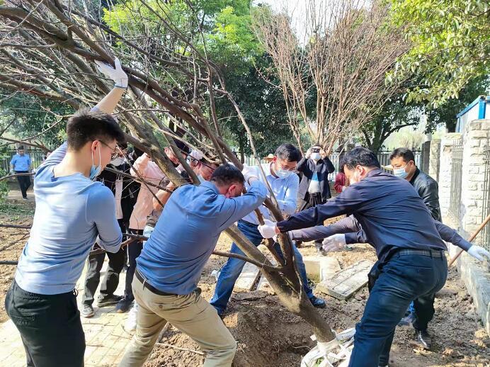 活动中,大家有序加入植树行列,手持铁锹和水桶,干劲十足,将一棵棵充满生机和希望的树苗植入土里,遇到个头大的桂花树,处领导带头挽起袖子,与同志们一起挖坑、搬运,扶树、填土、浇水,大家一起齐心协心,挥汗如雨,在一片欢声中忘记了疲劳,收获着种植的辛劳与快乐。