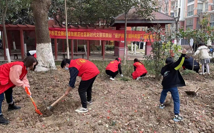 3月12日上午,张居正社区联合万福园物业在新城国际小区开展“爱护环境 播种希望”植树节活动。