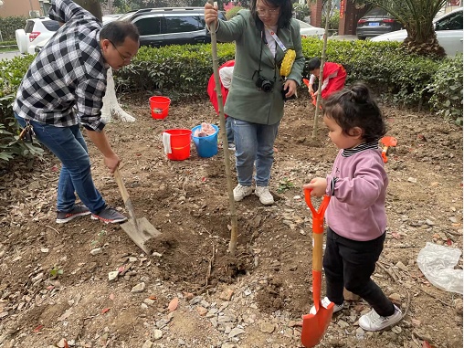 当天上午,社区工作人员向参加活动的居民们发放植树工具。志愿者们先将绿化带里干枯的苗木进行了更换,对枯草区重新刨地、栽种,随后将事先准备好的树苗一一种下,每道工序有条不紊,到处一片热火朝天的劳动场景。大家看着自己辛勤栽种的树苗非常兴奋地说,今后一定会经常过来查看树苗的生长情况,保证让栽下的每一棵树都能存活。