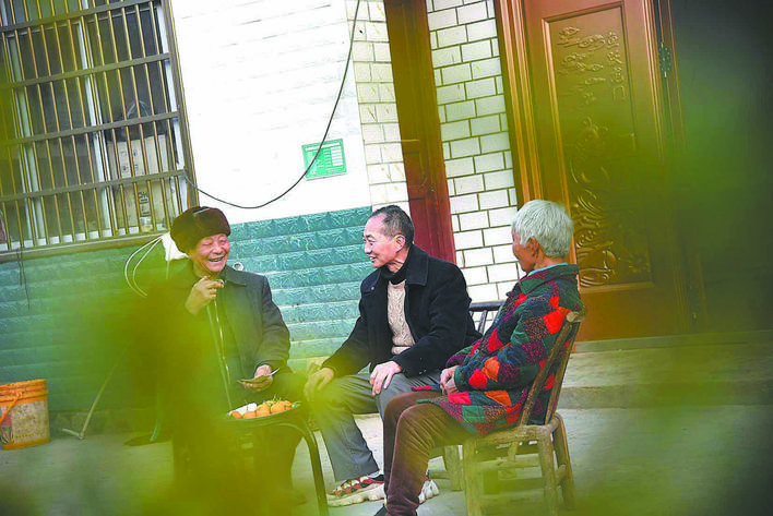 乌鸦坝村“和事佬”吴定礼和村民闲话家常。(资料图片)