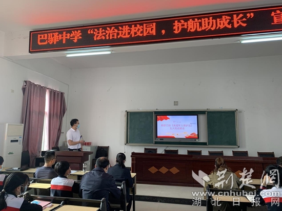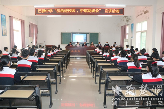 巴河镇巴驿中学“法治进校园 护航助成长”宣讲活动现场。通讯员 供图