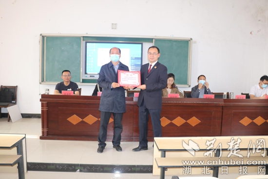 巴驿中学校长陈军明为该县人民检察院检委会委员、一级检察官万富国颁发法治副校长聘书。通讯员 供图