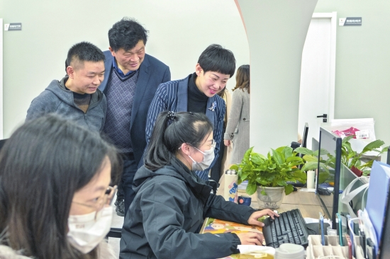日前,在沙市区红叶电商产业园内,市委统战部、民建市委相关负责人参观电商平台的直播间。