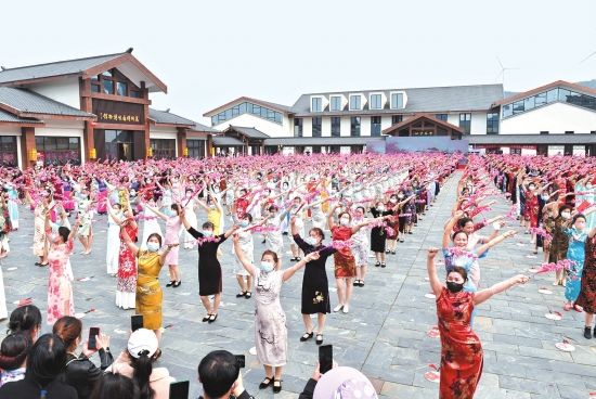正值三月踏春时。近日,在石首市桃源小镇广场,1200余名妇女身着五彩旗袍载歌载舞,拉开石首市桃源小镇春游序幕。