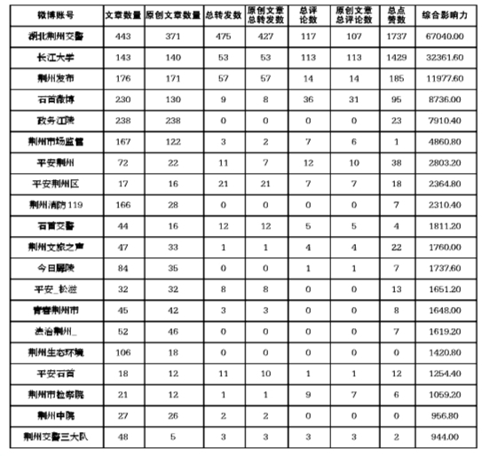 由荆州市委宣传部、荆州日报社主办,荆州发布联合人民网舆情数据中心标准化舆情服务大数据SaaS平台——人民众云统计的荆州市政务双微排行2月榜单出炉。