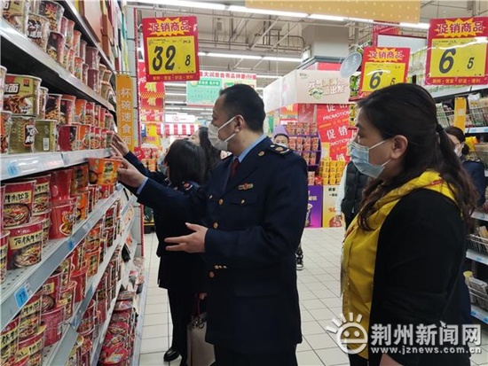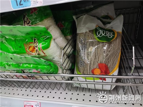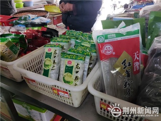 今天(3月17日)上午,荆州区市场监督管理局的执法人员来到万达的大润发超市,结合315曝光的问题产品名单对店内粉条、预包装酸菜及相关调料包等食品进行了检查,未发现问题酸菜和粉条。