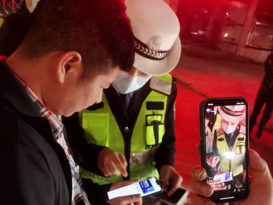 当晚7时30分,监利交警大队大队长舒军、副大队长张洪波带城区一、二中队在华容路重点路段设置临时检查点,执勤民警利用酒精测试仪、执法记录仪等设备,对过往车辆进行逐一检查并进行酒精检测,重点查处酒驾、醉驾、无证驾驶等严重交通违法行为。直播中,副中队长李彭向网友普及相关法律法规及交通安全常识,详细介绍了查酒驾的工作流程及酒驾、醉驾判定标准及相应的违法后果,倡导广大交通参与者要遵守交通法律法规、安全文明出行。