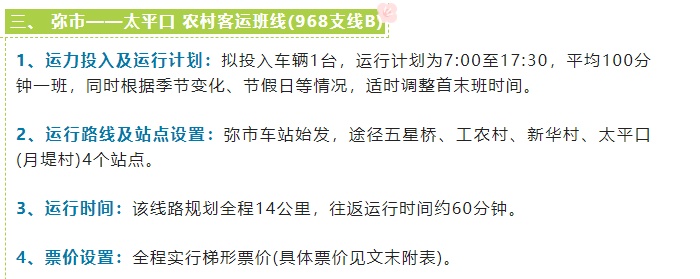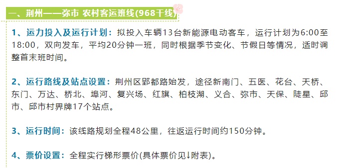 荆州至弥市农村客运班线公交化改造投入运行后,运营线路、停靠站点及票价将根据实际运营情况进行适当优化和调整。