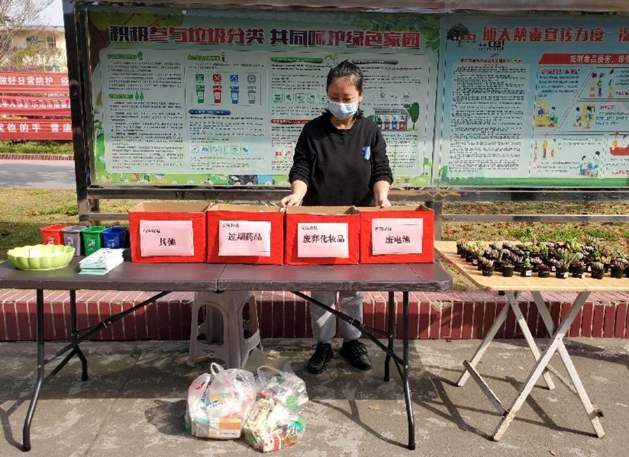 置换现场,居民们带来家中过期的药品、化妆品、闲置电池等前来兑换多肉绿植,6大箱、150余盆绿植仅3个多小时就全部兑换出去,共计回收过期药品200余盒、废电池100余个、过期化妆品100余瓶,其他有害垃圾30余件。置换过程中,社区工作人员还对居民进行垃圾分类知识讲解,对居民提出的日常垃圾分类中的疑问进行了现场解答,鼓励居民积极养成收集有害垃圾并正确投放的好习惯。