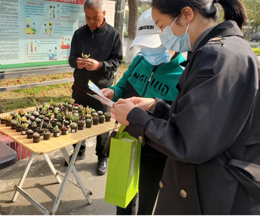 潜江新闻网讯(记者 王宇杰 通讯员 杨文杰) 3月18日,广华寺街道水杉社区开展“有害垃圾换绿植浓浓绿意满社区”垃圾分类宣传暨旧物置换活动,鼓励居民主动清理家中有害垃圾,提高社区居民日常生活垃圾分类投放意识,共同创建文明卫生城市。
