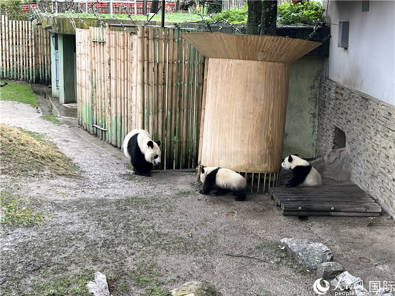 | 大熊猫双胞胎幼崽首次在室外亮相。人民网记者 姜波摄 |