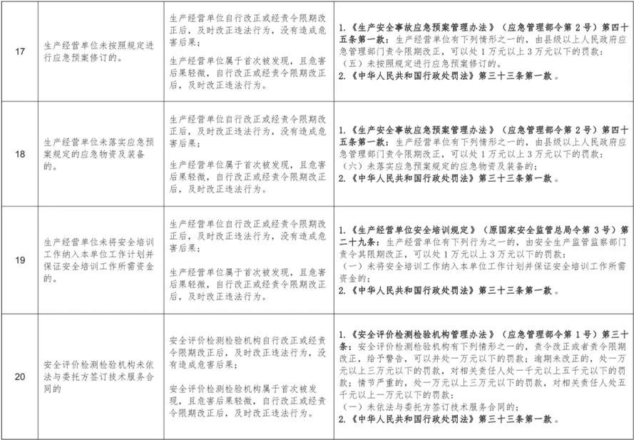 《清单》实施后,对于这种违法行为首次发现且危害后果轻微的,及时改正后,应急管理部门将对企业免于行政处罚。