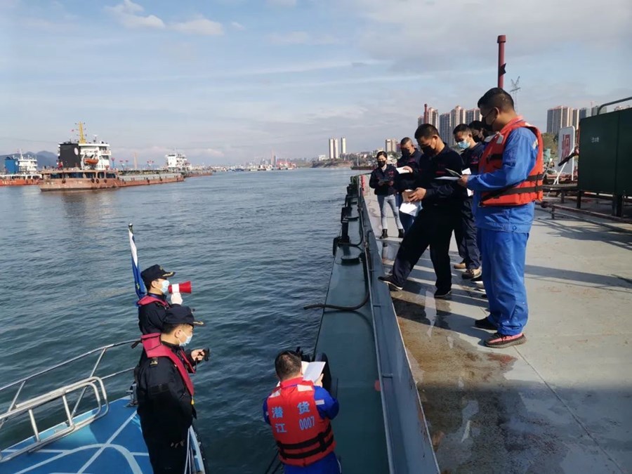 据了解,执法人员从宜昌市猇亭区磨盘港锚地登上潜江市隆昌航运有限公司所属的危化品运输船舶“鄂潜江货0007”,该轮始发港江苏太仓,目的港重庆长寿。跟船期间,执法人员与船上船员共同吃住、工作,切身感受船员的生活。