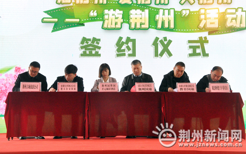 签约仪式上,荆州市旅行社行业协会与各景区、酒店签订框架合作协议,更好地为市民出行提供服务。