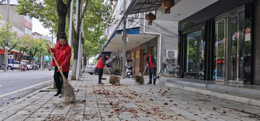 在红花社区,每天下班后,工作人员和志愿者都会对集镇道路两侧的树叶进行清扫。“我在这里工作几年了,能做一些力所能及的事情还挺有成就感。”红花社区工作人员、党员彭宇晨说。